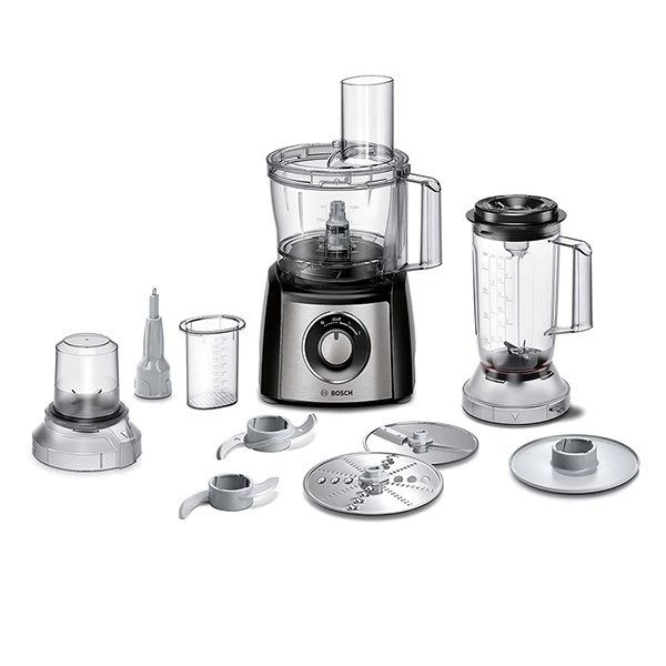 Le robot multifonction compact MultiTalent 3 de Bosch est doté de plus de 50 fonctions, pour une cuisine plus fun et plus créative ! Vous pourrez ainsi râper, émincer, moudre, hacher, mélanger, etc. grâce à la diversité des accessoires inclus tels que le blender d’1 L, le mini-hachoir, et les différents éléments (couteau, pétrin, batteur, disques à râper et émincer). Les ingrédients sont hachés parfaitement, les milk-shakes et les smoothies sont mixés de façon homogène et votre pâte à brioche est pétrie sans effort.
